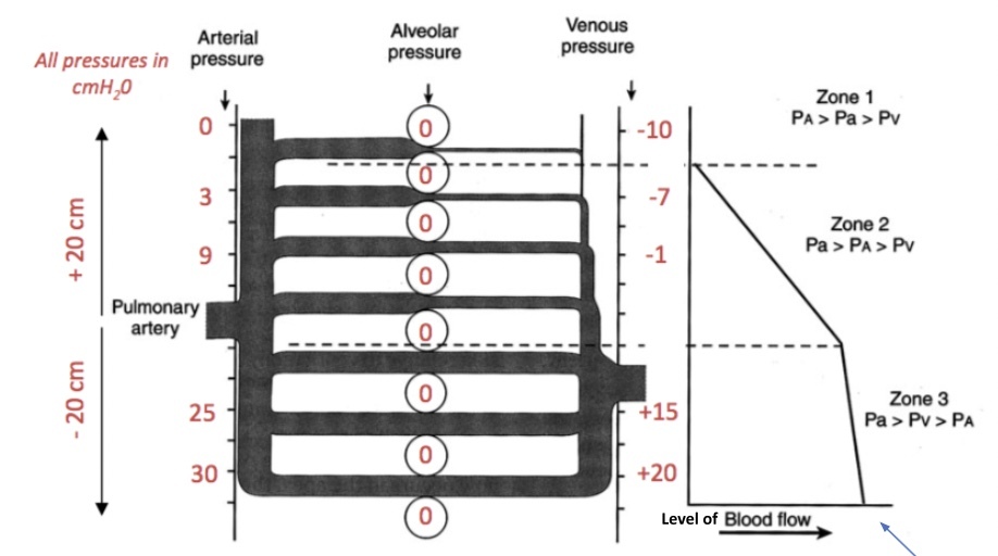 So, as we go up the lung we end up with alveolar pressure blocking blood flow through the lung.