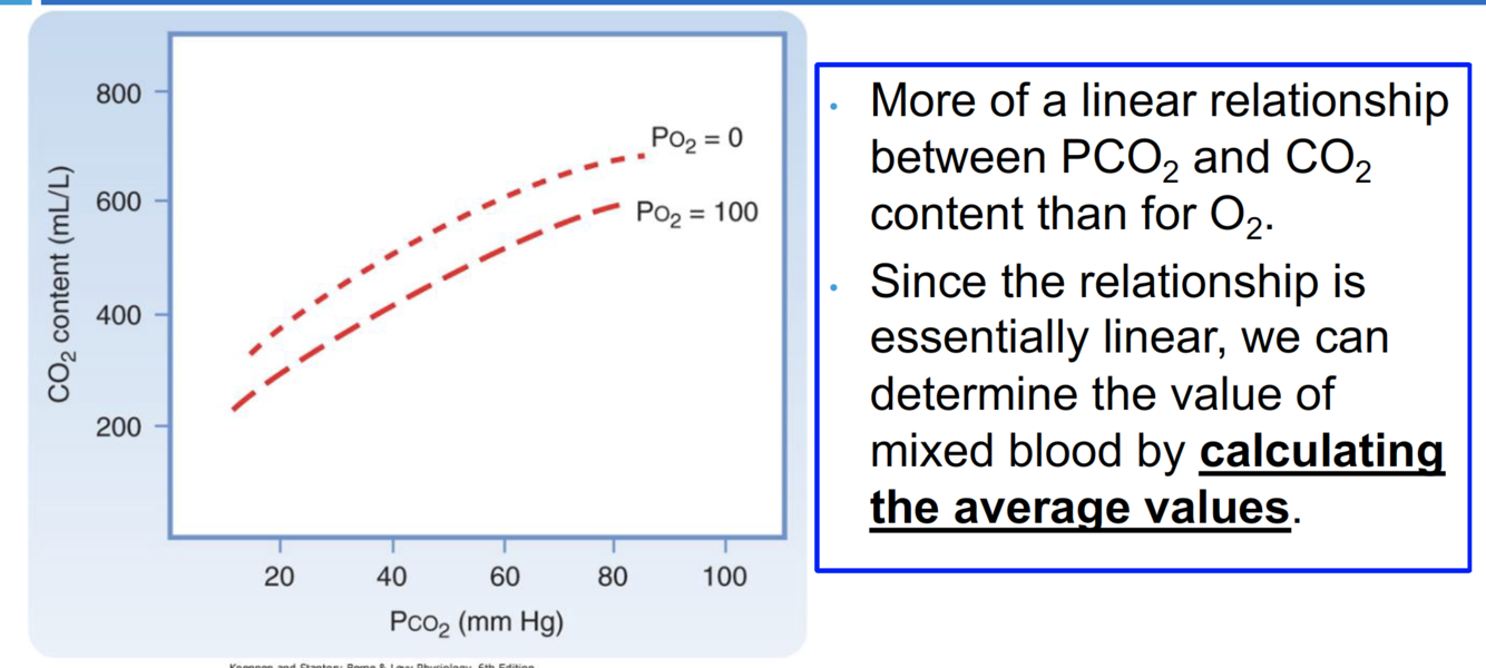 If you have a sample of shunted blood that has a PaCO2 of 46mmHg and a sample of blood that has undergone gas exchange with a PaCO2 of 20mmHg, what will be the value of the PaCO2 when these blood samples mix in the pulmonary vein?