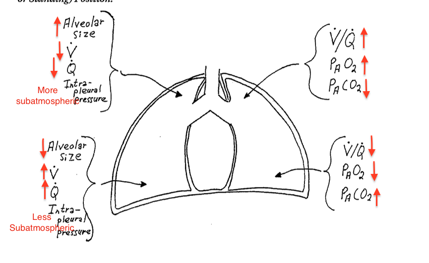since ventilation is a change in volume… where is ventilation the best in this patient???? and why?