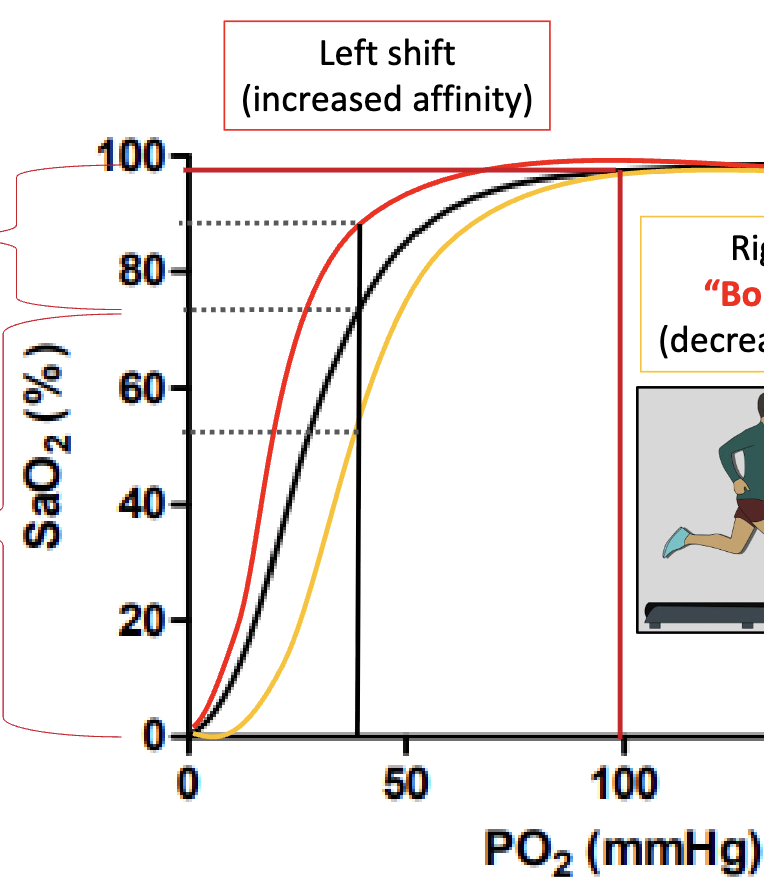 Left shift (Haldane effect): Bind oxygen “tighter”