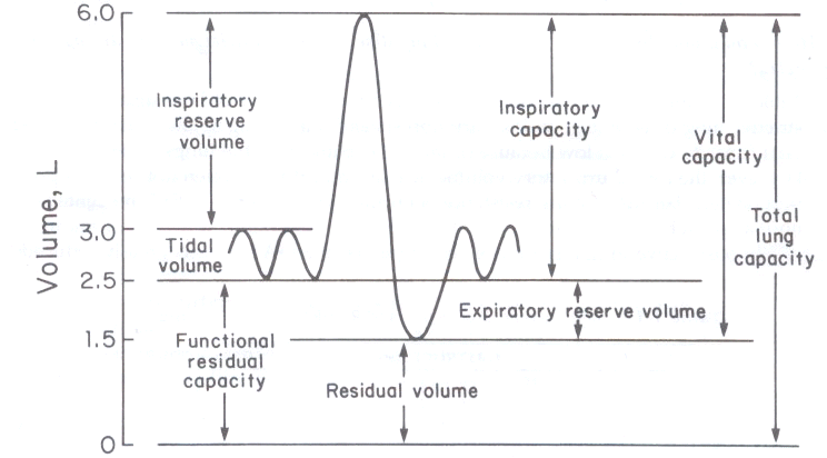 1cc/lb so 150mL for 150lb healthy person, 1/3 of tidal volume.