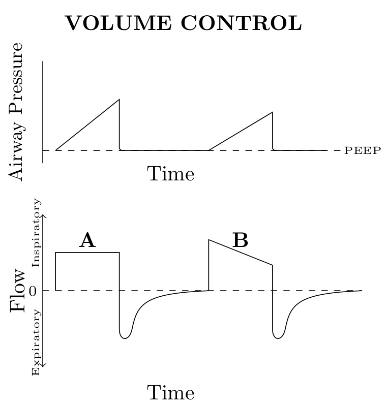 delivers a predetermined flow over a specific time to achieve a preset tidal volume Usually the clinician sets the tidal volume and respiratory rate. May set the inspiratory flow and inspiratory time, the product of which determines the actual tidal volume (tidal volume = mean inspiratory flow x inspiratory time)