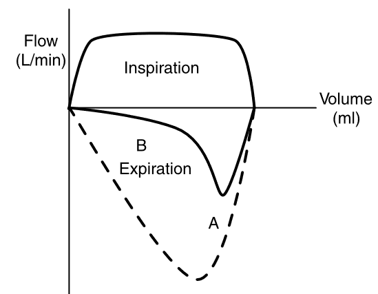 Volume doesn’t return to 0 –> doesn’t expire all air that is given, e.g., bronchopulmonary fistula, air leak