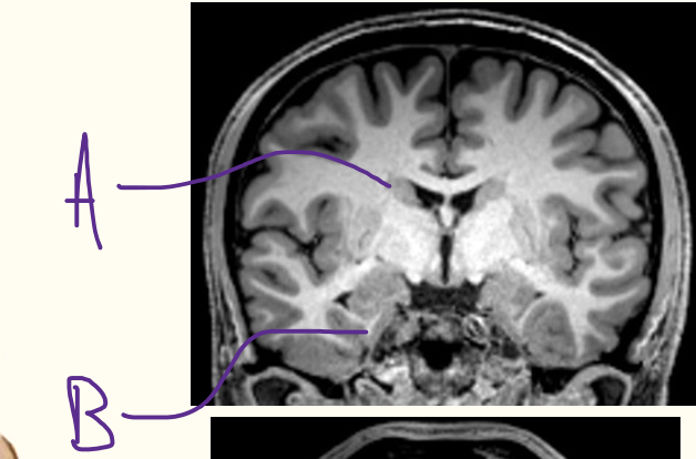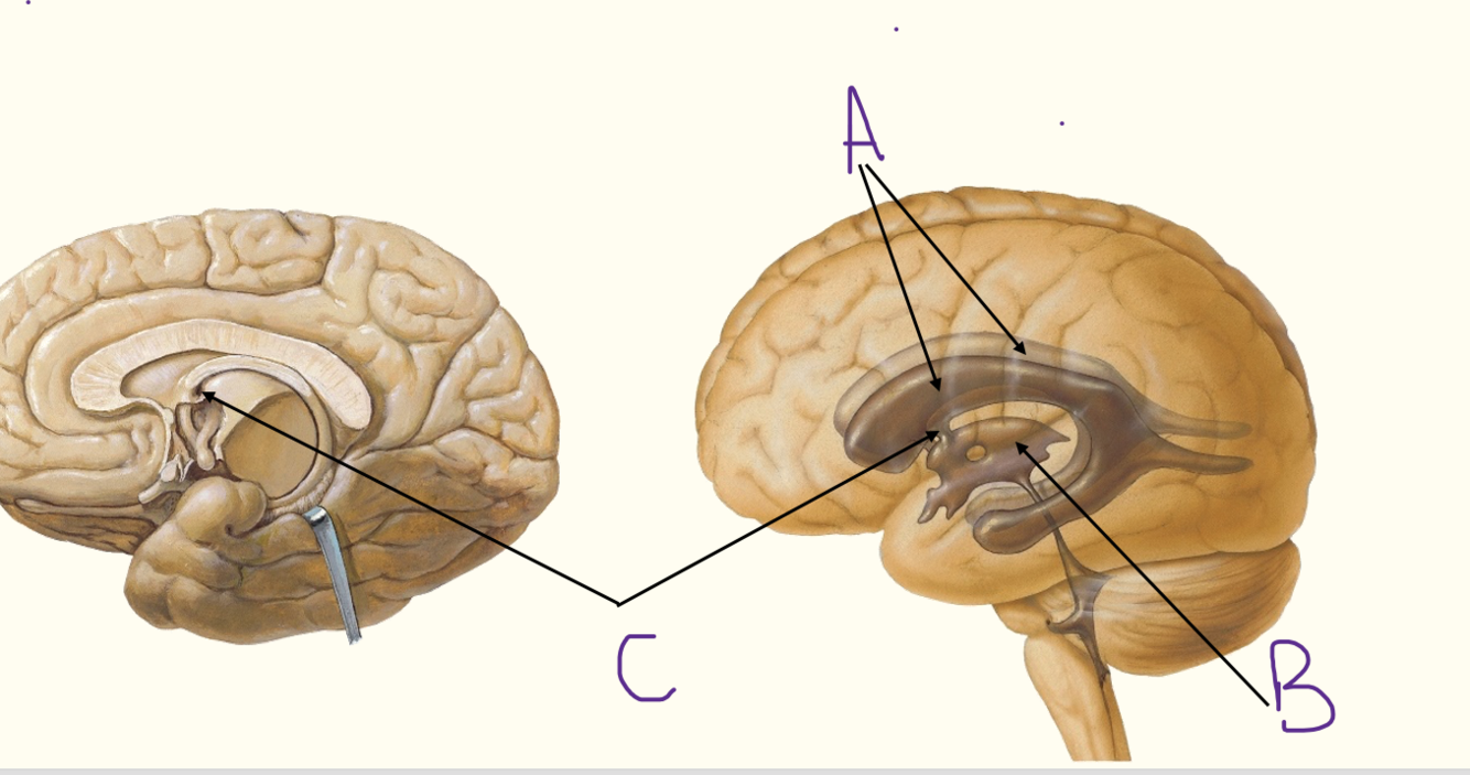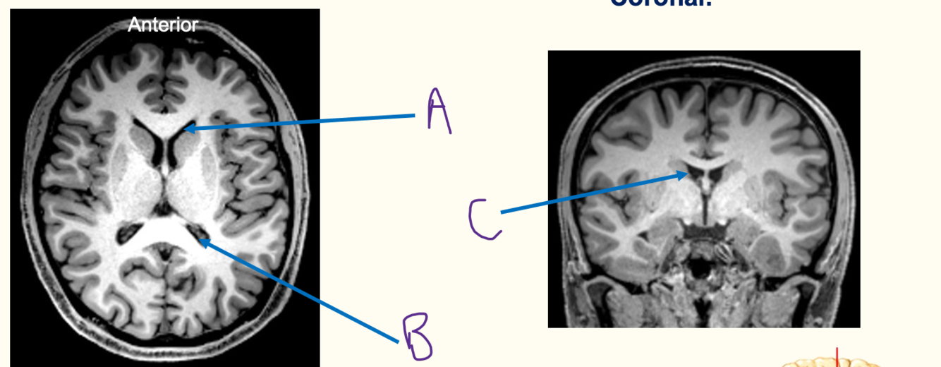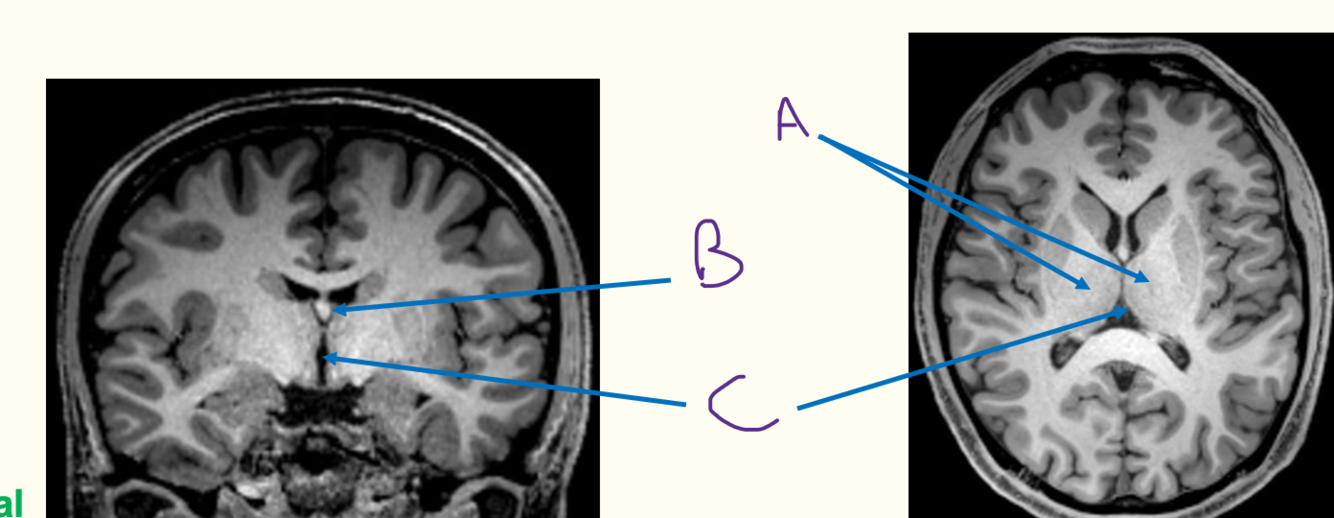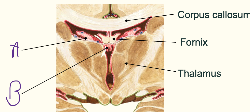 A = fornix B = septum pellucidum