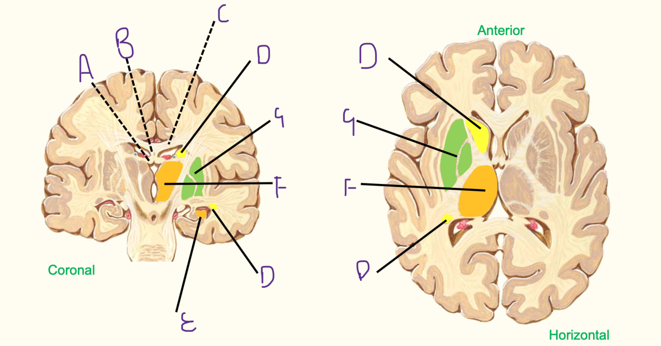 D = caudate nucleus