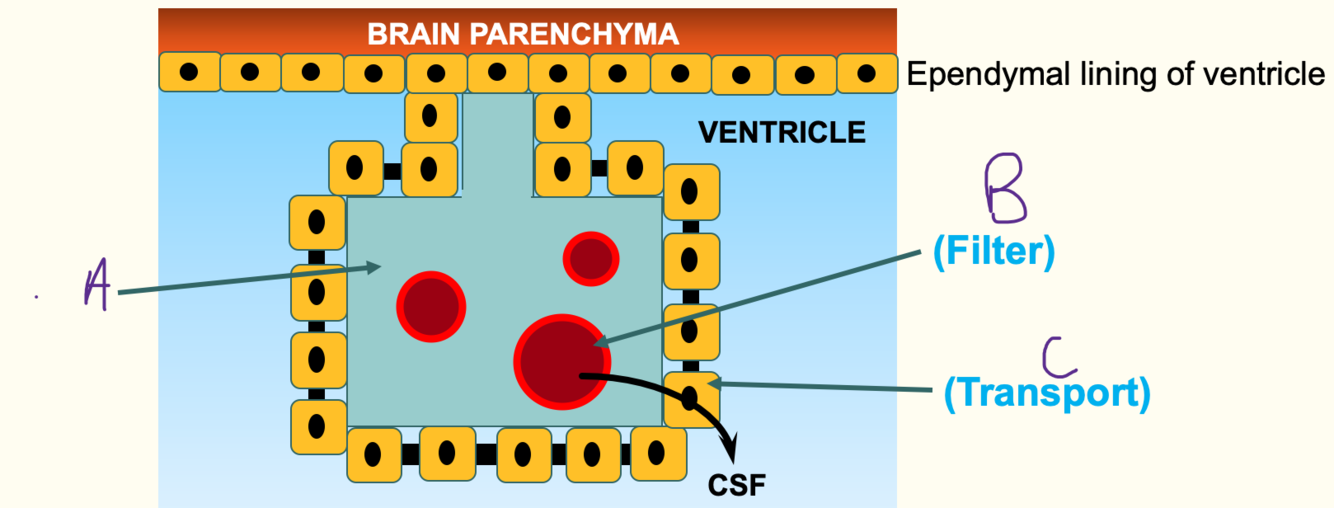 iii) important for CSF to contact brain parenchyma due to