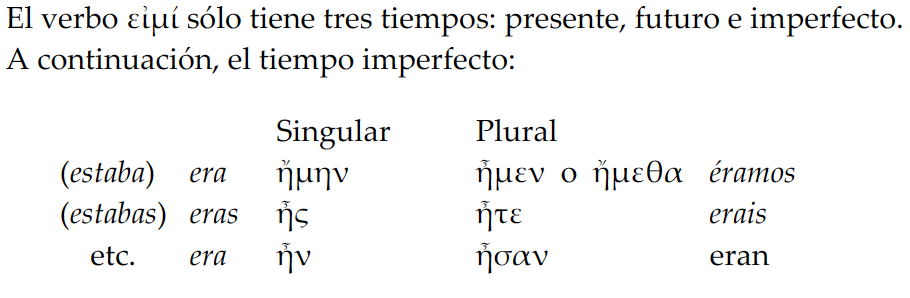 Verbo ειμι en imperfecto
