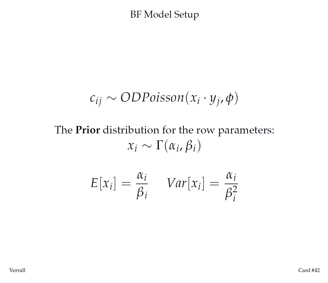 ⇧ Define prior distributions for the row parameters xi. In practice, these are often defined as gamma distributions where the B parameter controls the level of confidence in the prior information