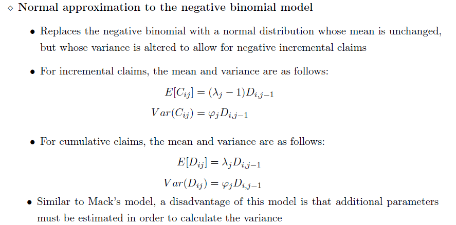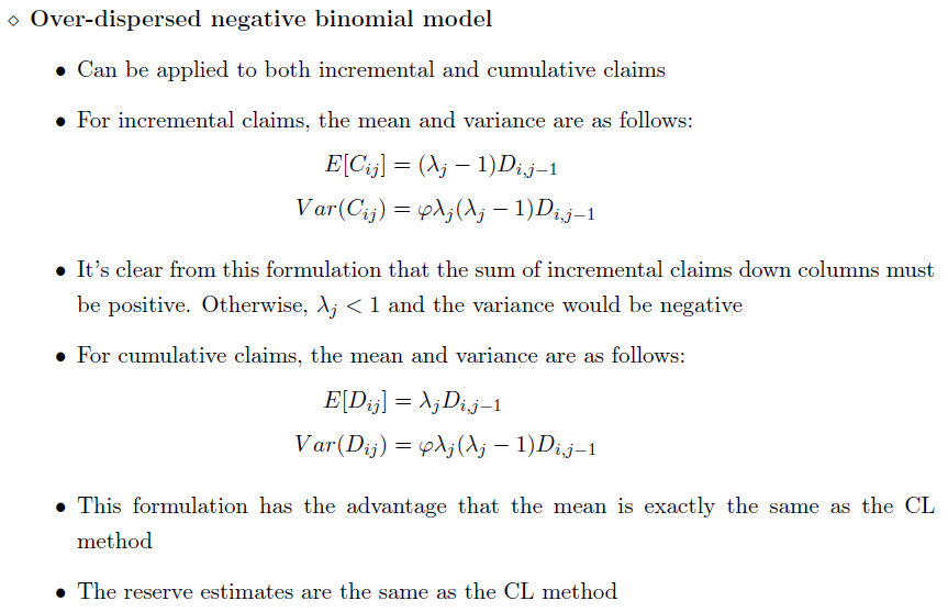 ⇧ Over-dispersed negative binomial distribution – requires the sum of the incremental values down a column to be positive