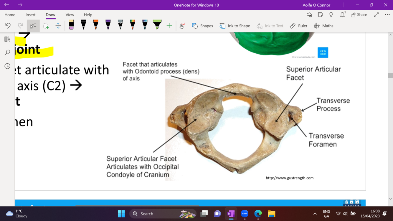 what does the inferior articular facet of the C1 vertebrae articulate with ? and what joint does it form as a result?