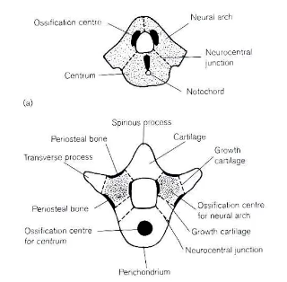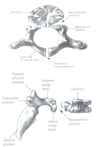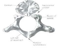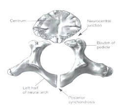 adult vertebral body formed from centrum and “boutons” of pedicles