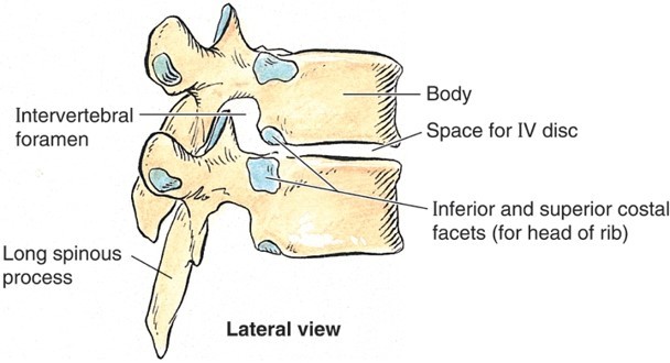 Describe the features of the thoracic vertebrae?