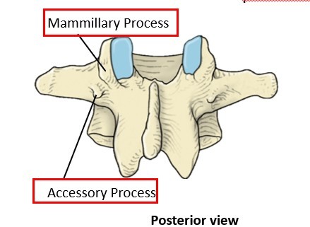 Transverse Process - Has transverse foramen and also anterior and posterior tubercles for the spinal nerve to pass in between
