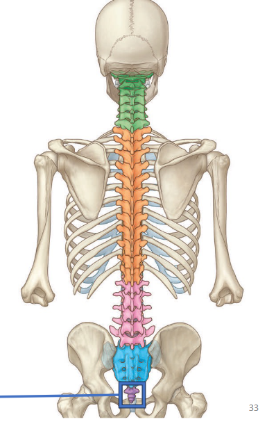 small triangular tail bone formed by fusion of the four coccygeal vertebrae