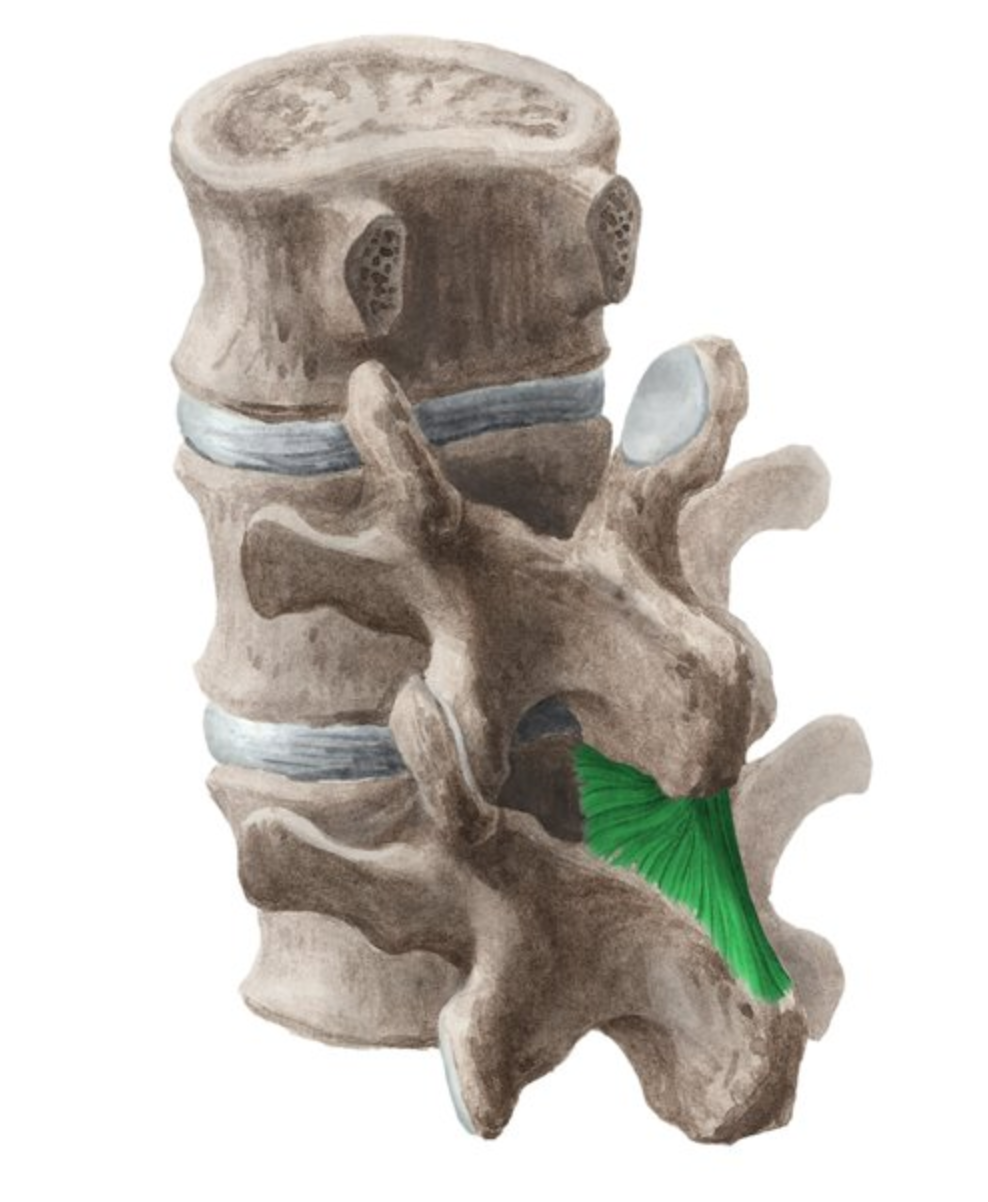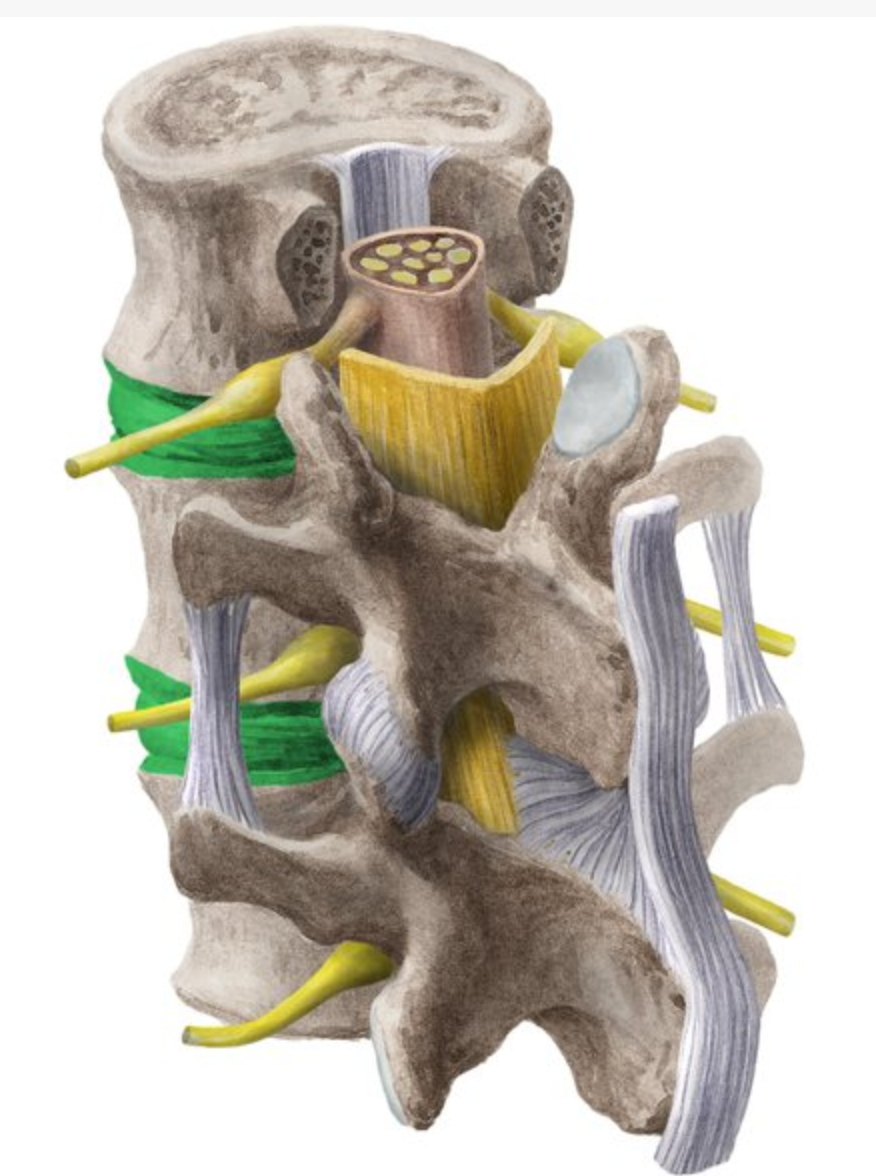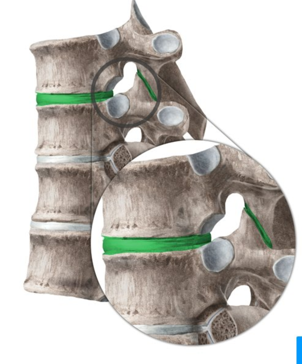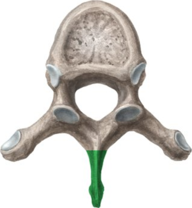 The characteristics of vertebrae (except C1 & C2 ) include 5 parts. List them and ID them on the image included.