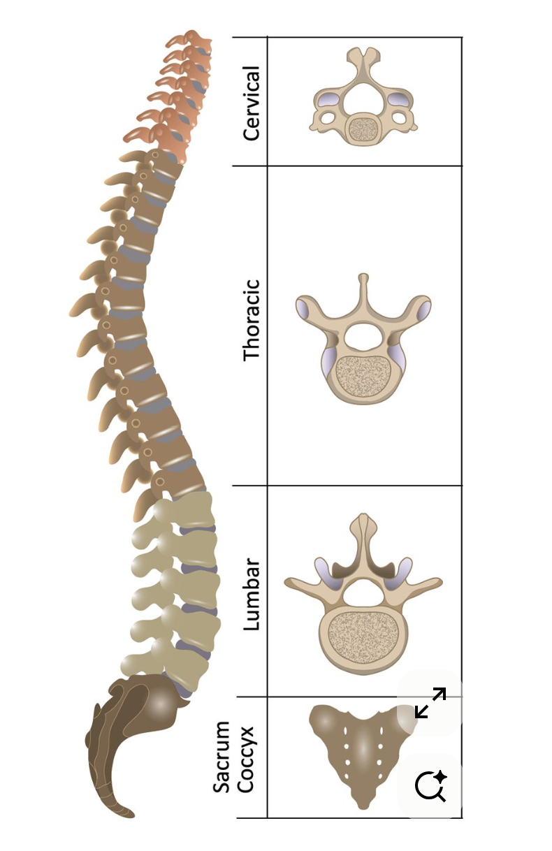 ID the Vertebral Divisions and how many vertbrae are contained in each?