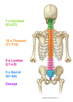What regions are there in the vertebral column?