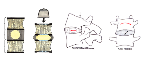 This increases pressure in the nucleus pulposus.