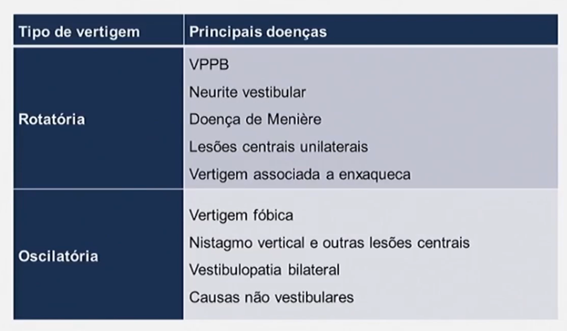 Oscilatória: sensação de estar balançando, com perda de equilíbrio;