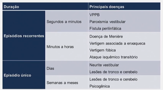 Como classificar as crises de vertigem de acordo com a temporalidade x causas?