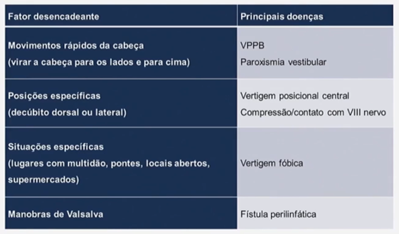 Ex.: VPPB - o paciente está assintomático. Movimenta a cabeça, o sintoma SURGE. Pára de movimentar, desaparece.