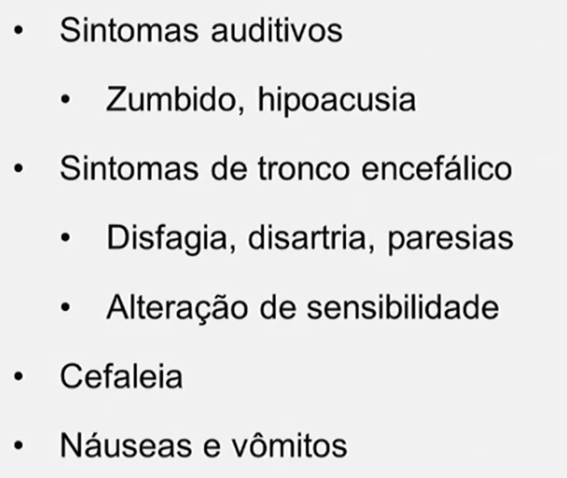 Náuseas e vômitos apontam para causa vestibular, porém nem sempre estão presentes.
