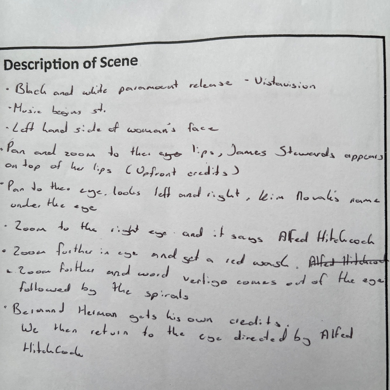 When Madeline stands up to leave, the close up profile shot of Madeline is visible to the camera then Hermann’s romantic score intensifies. The zoom into Madeleine coinciding with a crescendo of non-diegetic romantic strings communicates to the audience how Scottie feels about Madeleine.