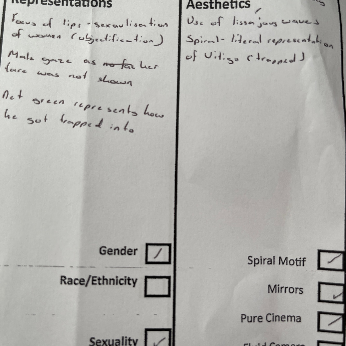 This makes Madeline stand out to the audience just as she stands out to Scottie. The overwhelming display of wealth and power in the restaurant alienated Scottie. Scottie’s gaze objectifies Madeline into an object of desire.
