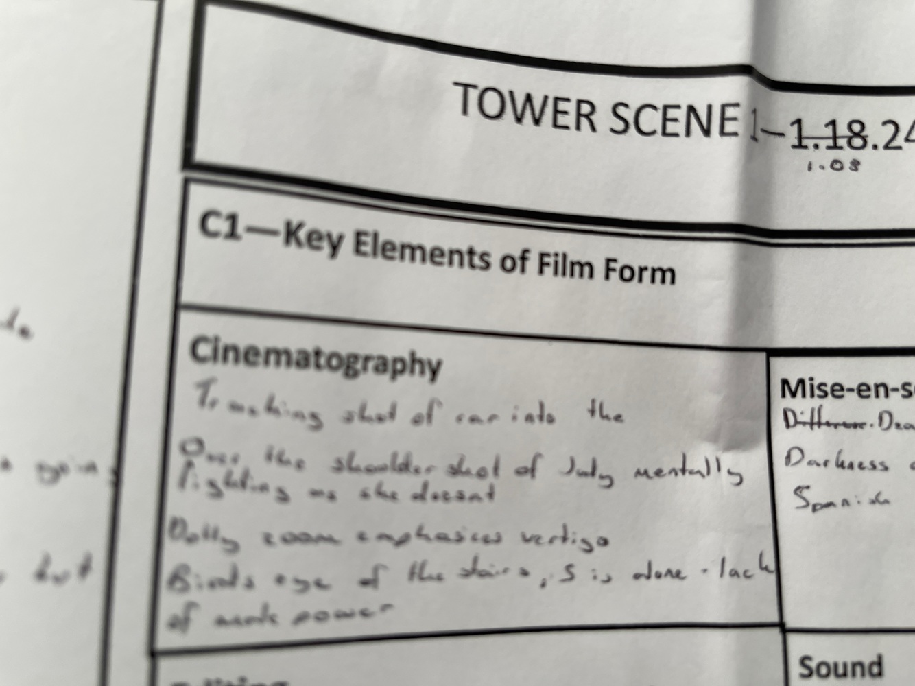 describe cinematography in the tower scene