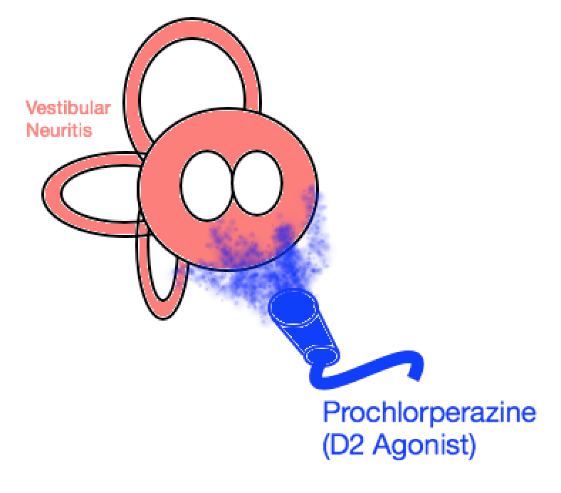 Vestibular sedatives - Prochlorperazine (D2 agonist - antipscyh and antimigraine as well)