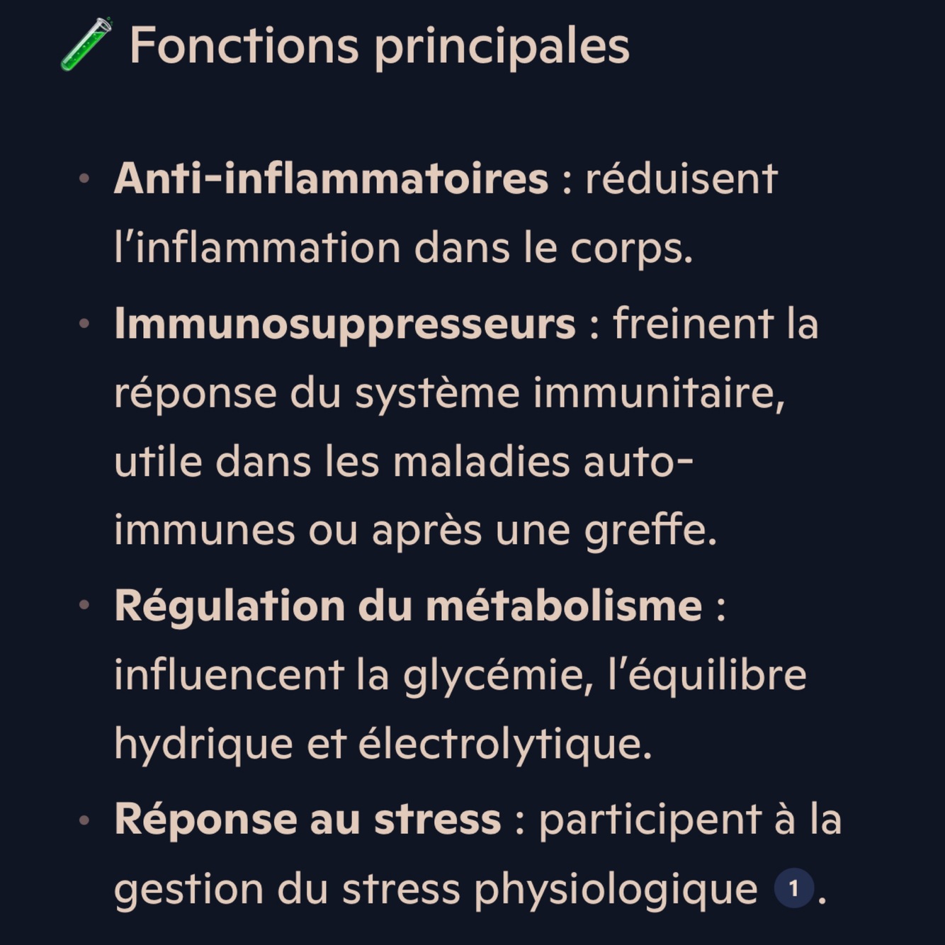 Production de corticostéroïdes.