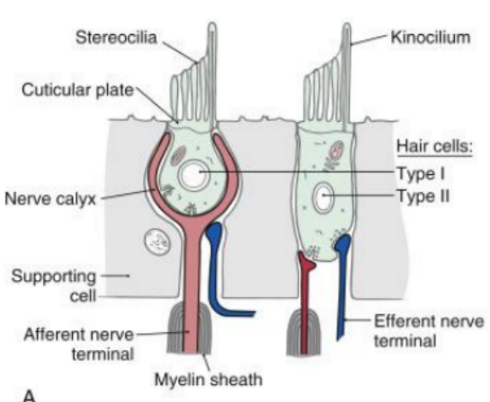 What type of cells have a single, long kinocilium projecting from the apical surface? What is its function?