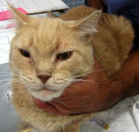 Coat color and sun exposure likely predisposed this cat to developing the tumor seen in the photo.
