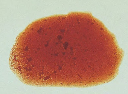 The image shows a positive slide agglutination test. The dark patches in the sample are caused by antibodies attached to the surface of the erythrocytes cross linking the cells together causing these clumps. This is highly suggestive of an immune mediated reaction to antigen on the individual’s red blood cells.