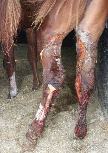 Primary immune-mediated thrombocytopenia (sometimes called idiopathic thrombocytopenia) can be seen in horses but is not consistent with the necrotizing vasculitis described in the case.
