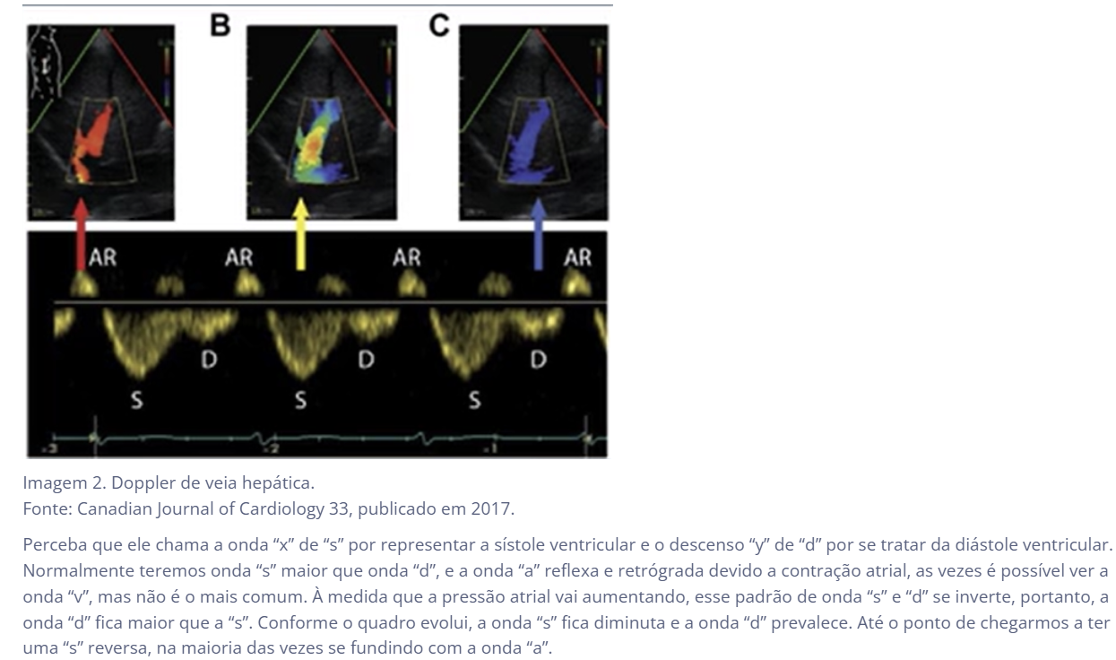 a veia hepática é a mais próxima da veia cava inferior. Portanto, as mudanças de fluxo na veia hepática são definidas pelas mudanças na pressão atrial direita