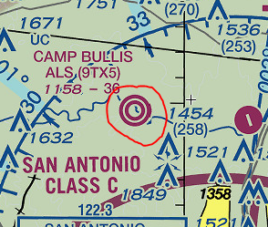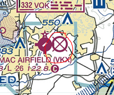 Open dot within hard surface runway indicates approx VOR, VORTAC, DME location