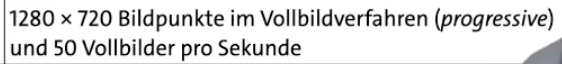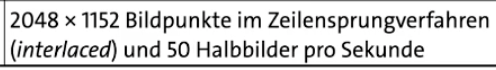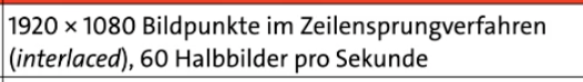 - bspw. statt 25 Vollbilder pro Sekunde, 50 Halbbilder pro Sekunde