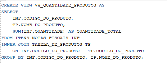 O prefixo VW_ ajuda a identificar facilmente que o objeto é uma view, seguindo boas práticas de nomenclatura.