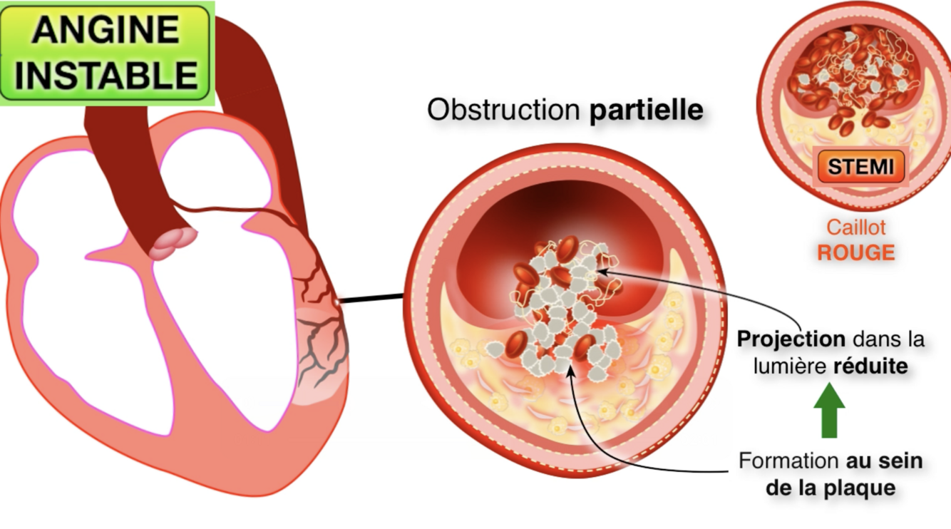 Qu’est-ce qui cause le plus souvent une obstruction en angine instable?