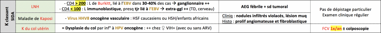 Complications non infectieuses associées à l’infection à VIH : K classant SIDA