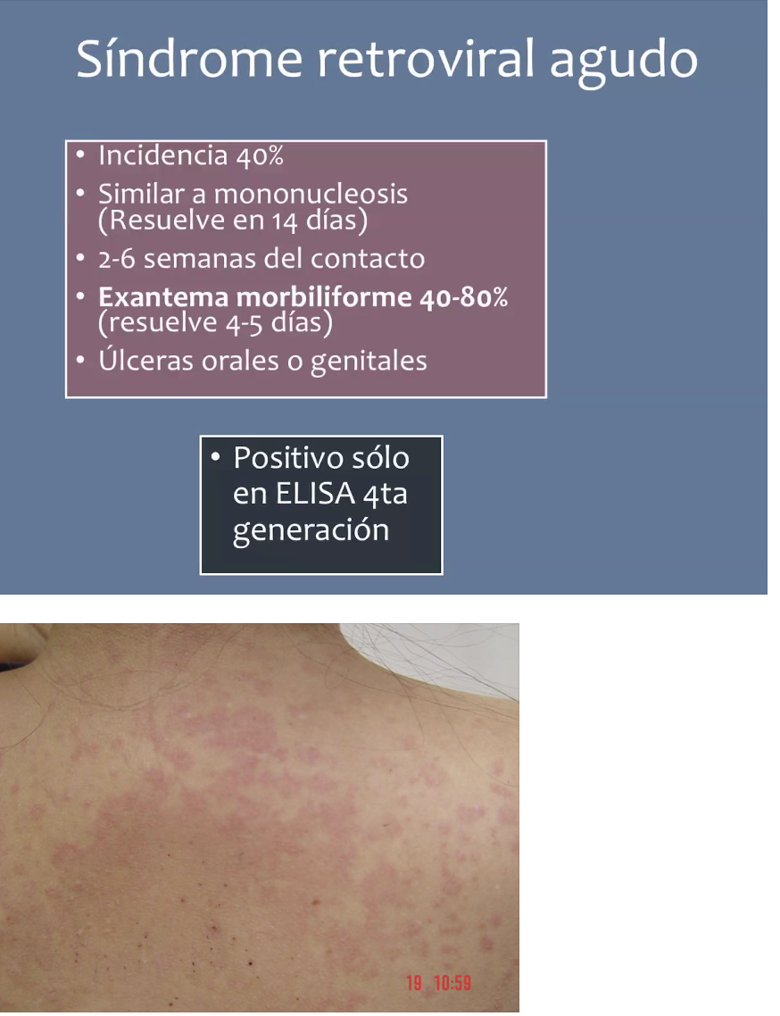 Síndrome retroviral agudo: cuadro clínico, a cuantas semanas del contacto aparece, dx, dxdx