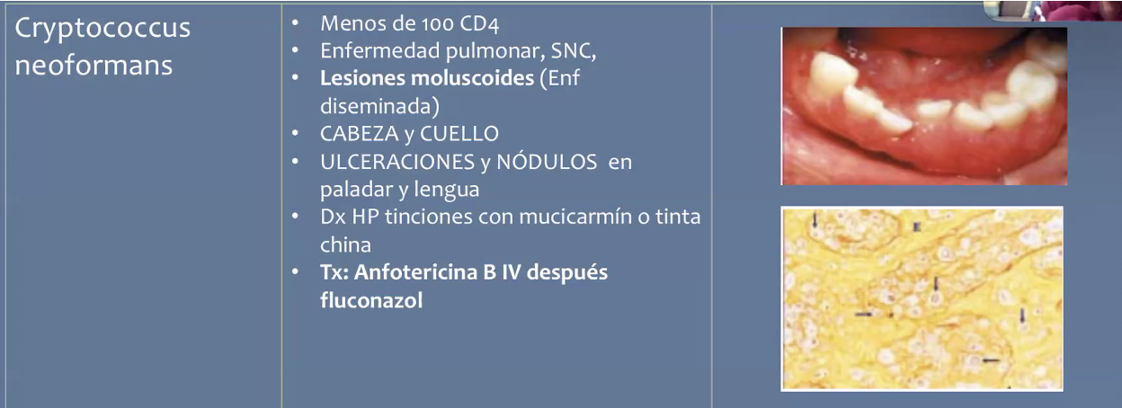 Cryptococcus neoformans: cantidad CD4, clínica, dx, tx
