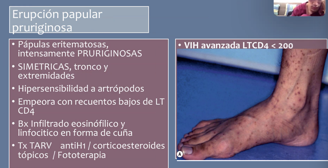 Erupción papular pruriginosa: clínica, localización, bx, tx