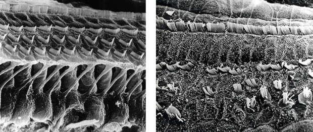 Mekanisk påverkan på nervceller med åldern gör att det slits, ju mer man besväras av buller och ljud. Varför blir det ofta svårt att höra de högsta frekvenserna med ökad ålder?