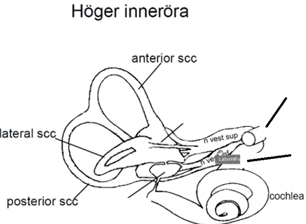 o Två olika sätt: heldragen linje går via luft och streckad går vi benledning (vibration i skallen)