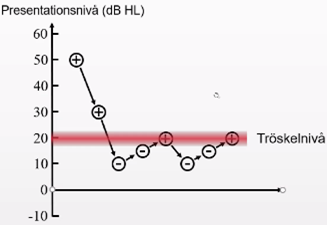 o Audionomen säkerställer på en viss nivå som ses på bilden (+ betyder att patienten hör)
