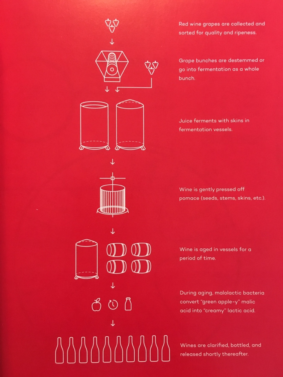 Sugar (from ripe grape juice) + Yeast (ambient or inoculated) = Alcohol, CO2, Flavors and Aromas, Heat
