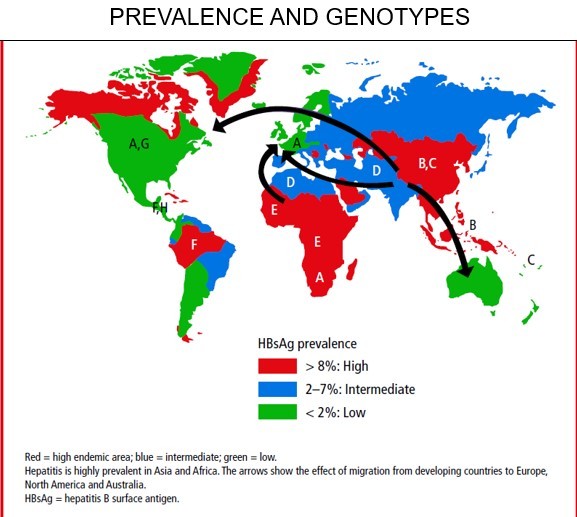 10 genotypes (A-J) with distinctive geographic distribution