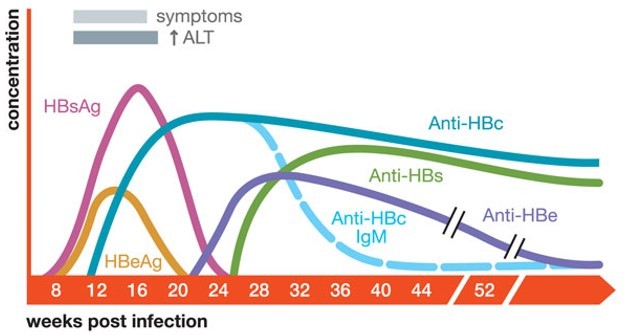 How does HBV antigens change over time?